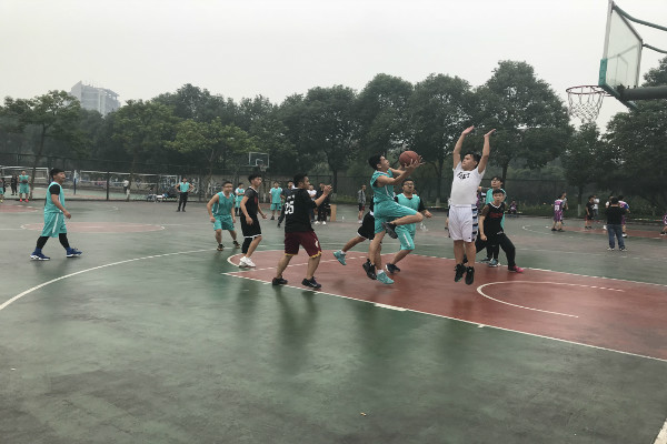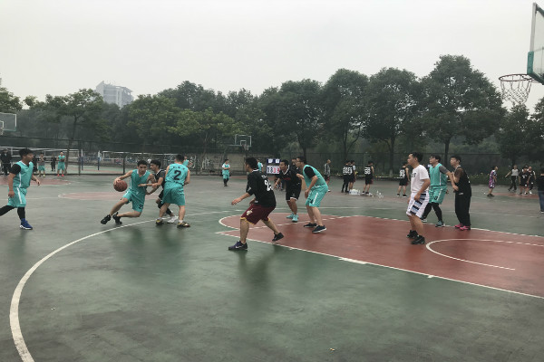 10月12日中午12:30,機電院籃球小組賽研一隊和17級機設隊的比賽在一期籃球場正式開賽。