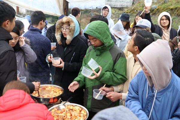 抵達冶勒湖后,因為大巴車只能抵達門口,所以同學們只能徒步一段距離,由領隊帶領大家前往營地安營扎寨,在此途中同學們都乖乖的聽著領隊的指揮:不靠近湖泊懸崖邊緣!搭建好帳篷后,同學們開始了盡情的玩耍!等到17:00左右同學們回到了營地開始準備晚餐,同學們切菜的切菜,燒水的燒水,燙著火鍋唱著歌一起度過一個美好的夜晚。