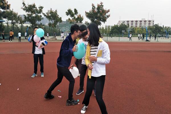 兩點半理事們準時到達場地,通過抽簽對人員進行了分組,每組三人,共六組,進行第一個游戲——夾氣球。每組自行分配吹氣球和夾氣球的人員,現場一片火熱,砰砰砰的聲音不斷激勵著所有人,都在努力進行中。活動結束最后兩組的隊員進行了一個小小游戲懲罰,有逗趣的舞蹈,優美的歌曲,還有男生背著女生做俯臥撐。現場一片歡聲笑語。