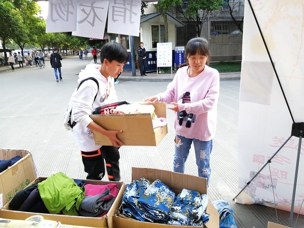活動開始前幾天,部長帶領委員對活動進行了初步宣傳,如發(fā)傳單、向路過的學生講解活動內容等。活動開始,參與活動的志愿者們提前抵達總服務點,為活動做了充分的準備。活動期間,志愿者們穿梭于校園內,收集同學們熱心捐贈的舊衣物,溫暖的日光柔柔地灑在他們的身上,形成了一道亮麗的風景線;另外同學們還主動將衣物送至總服務點。收集的衣物由志愿者們分門別類整理后,交由善濟社工送給敬老院的老人和邊遠山區(qū)的孩子。