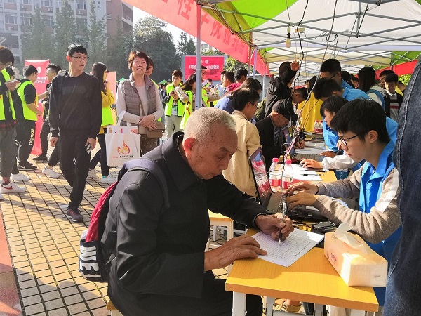 老校友們紛紛從迎新大巴上下來,在自愿者的指導下激動地走到迎新點進行簽到,并領取學校的紀念品。他們在看到學校的現狀時,都發自肺腑的感嘆學校的變化;他們在看到多年未見的老同學時,面帶微笑,暢談以前的美好時光;他們在接受志愿者的幫助時,都對志愿者熱情的工作贊不絕口。