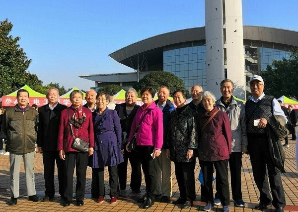 當老校友們漸漸來齊時,場面也變得越來越熱鬧,他們紛紛在體育館前進行合影留念,特別是他們看到自己的老朋友時,就開始一起聊天,一起歡笑,一起回憶在母校的青春歲月。
