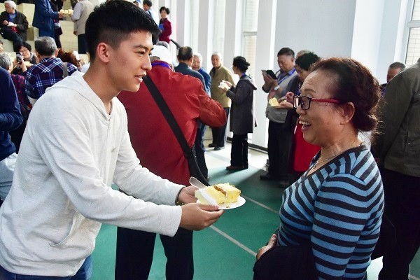 為紀(jì)念母校60華誕,機(jī)電工程學(xué)院特意準(zhǔn)備了一個別具學(xué)院特色的生日蛋糕。58級薛菊芬大師姐,老領(lǐng)導(dǎo)馬德坤老師,礦機(jī)77級王進(jìn)全校友,礦機(jī)83級張斌校友,機(jī)械90級尹永清校友,過程裝備與控制工程2012級校友武新春,機(jī)電院第六十屆團(tuán)委學(xué)生會主席梁仕遠(yuǎn)同學(xué),機(jī)電院黨委書記李忠偉,石明江副院長為大家切下第一刀,將活動氛圍推向最高潮。大家一起品嘗美食,嘴中是香綿細(xì)軟的蛋糕,心中是化不開的喜悅,回味的是不曾褪去的濃濃機(jī)電情。