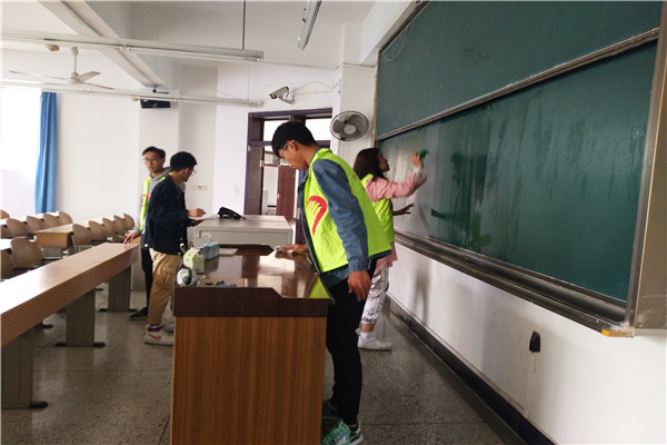 為了活動順利進行,活動負責(zé)人提前做好了調(diào)查,選擇了思學(xué)樓A206,A207兩個學(xué)生流量多的教室,并在活動前三天提前聯(lián)系好志愿者以及考核人員?;顒赢?dāng)天,組織人員安排了志愿者攜帶清掃工具以及其負責(zé)事項等。