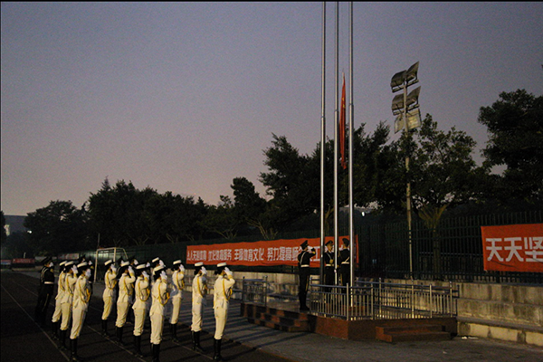 升旗儀式結束后,有18級同學感慨道:“我覺得升旗儀式能激起同學們的愛國熱情,能增強同學們的民族自豪感和集體榮譽感。”(文/孫嘉航 向朝陽 圖/陳建文)