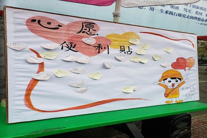 3月7日,中午11:30到13:00,下午5:30到7:00,旅游與信息協協的理事們在一食堂門口緊鑼密鼓地布置場地,認真的準備工具。理事們將便利貼和中性筆提前準備好,以便有愿望的女生們可以隨時寫下愿望貼在展板上。理事們都在期待著女生們到來,希望她們都能實現自己的小愿望。