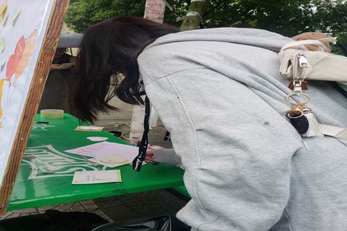 正在填寫心愿的女同學