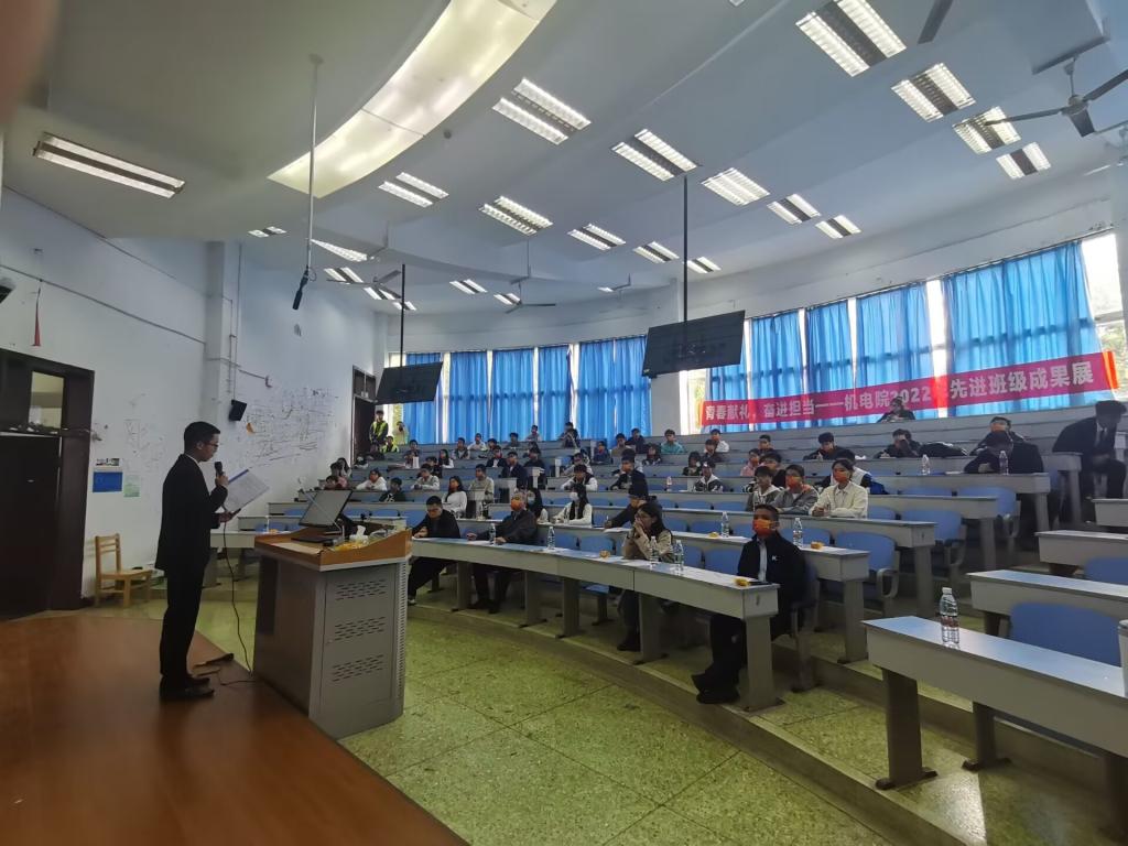 11月4日,青春獻禮·奮進擔當-機電院2021-2022學年先進班級成果展順利舉行。學院學生工作辦公室主任、團委書記章志華,各年級輔導員出席展示活動并擔任評委。各參賽班級學生代表以及2022級全體班委參加了本次活動。