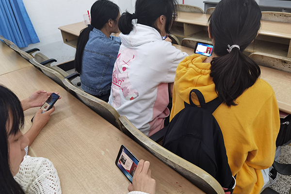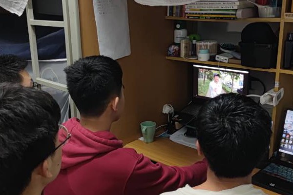 同學們在宿舍長的領導下觀看視頻并提出見解