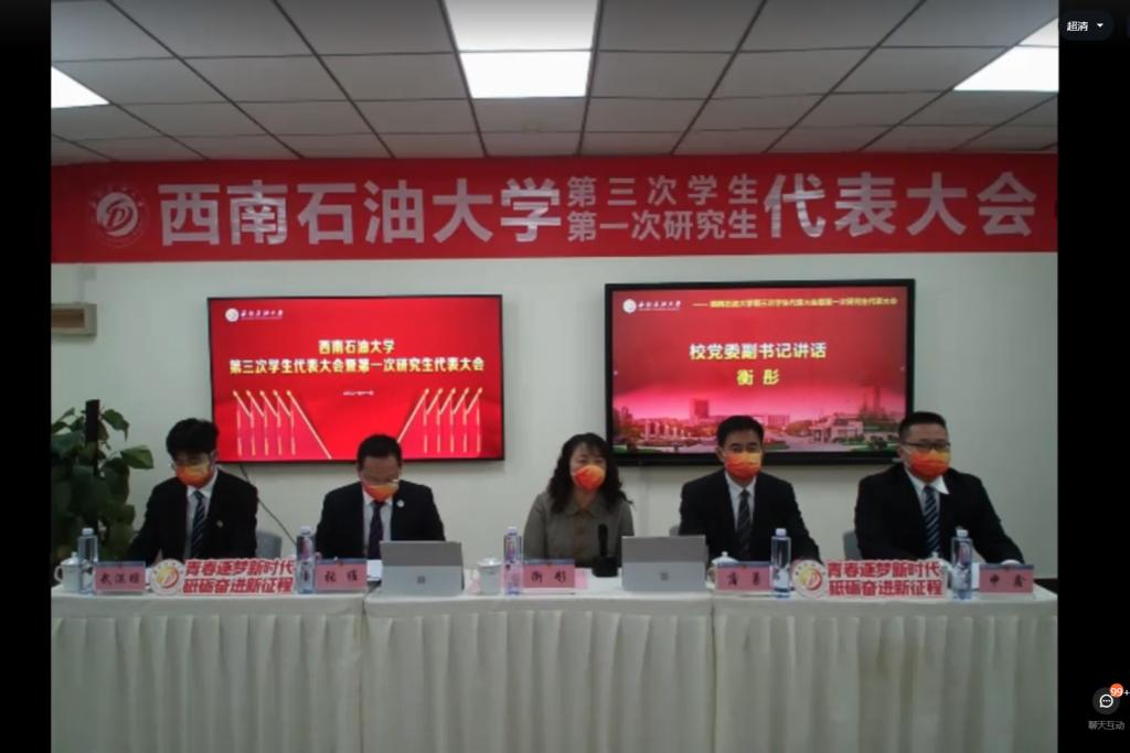 11月14日下午,西南石油大學(xué)召開第三次學(xué)生代表大會暨第一次研究生代表大會,校黨委副書記、校工會主席衡彤出席開幕式并講話,黨委學(xué)生工作部部長蒲勇、校團(tuán)委副書記張維、成都市學(xué)生聯(lián)合會執(zhí)行主席趙東琳、各學(xué)院黨委(黨總支)副書記(學(xué)生工作負(fù)責(zé)人)、團(tuán)委(團(tuán)總支)書記、副書記,343名正式代表參加大會。出于對疫情防控的重視,本次會議線上舉行。
