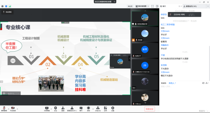為培養(yǎng)機(jī)械協(xié)會(huì)會(huì)員大學(xué)學(xué)習(xí)意識(shí)和行動(dòng)意識(shí),指導(dǎo)會(huì)員們進(jìn)行大學(xué)生涯規(guī)劃,解答會(huì)員們的問(wèn)題以及培養(yǎng)協(xié)會(huì)的“新血液”,機(jī)械協(xié)會(huì)于11月25日下午16時(shí)在騰訊會(huì)議舉辦學(xué)長(zhǎng)交流會(huì)并圓滿結(jié)束。