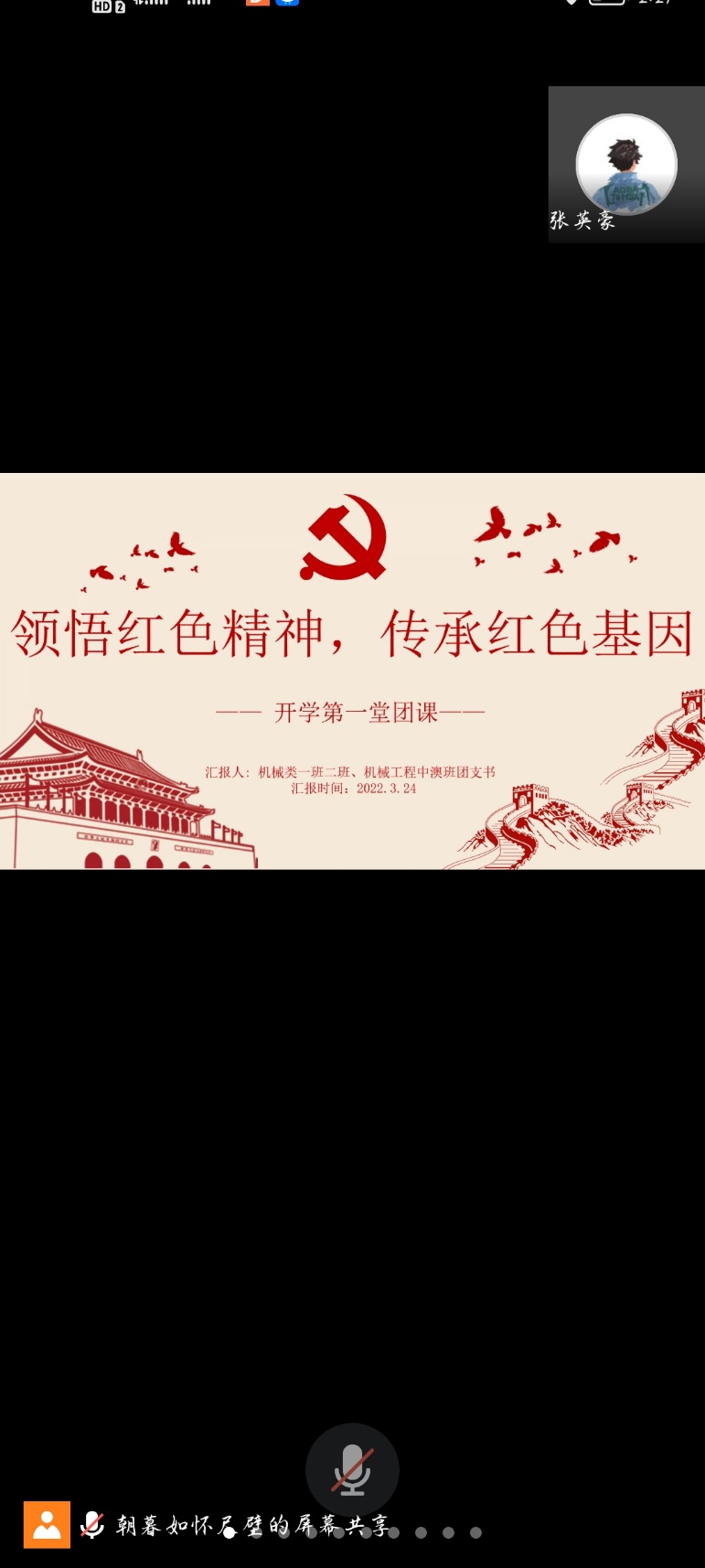 2022年3月24日,機電院2021級機械類中澳班,一班,二班全體同學于下午2點30分至3點30分在騰訊會議展開了以“領悟紅色精神,傳承紅色基因”為主題的開學第一堂團課。本次團組織生活由孟寬同學擔任主持人。