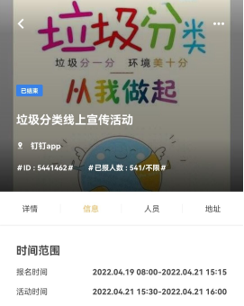 本次活動通過釘釘軟件直播進行,線上主持人通過PPT宣講垃圾分類相關知識,并與參與同學實時互動。本次活動還申請了勞育實踐板塊的第二課堂積分,設置垃圾分類知識線上答題環節,參與學生通過答題達到一定分值即可獲得該模塊的積分。答題環節的設立,更加調動了大家參與的積極性,也更好的將垃圾分類方面的知識進行了有效的傳播。