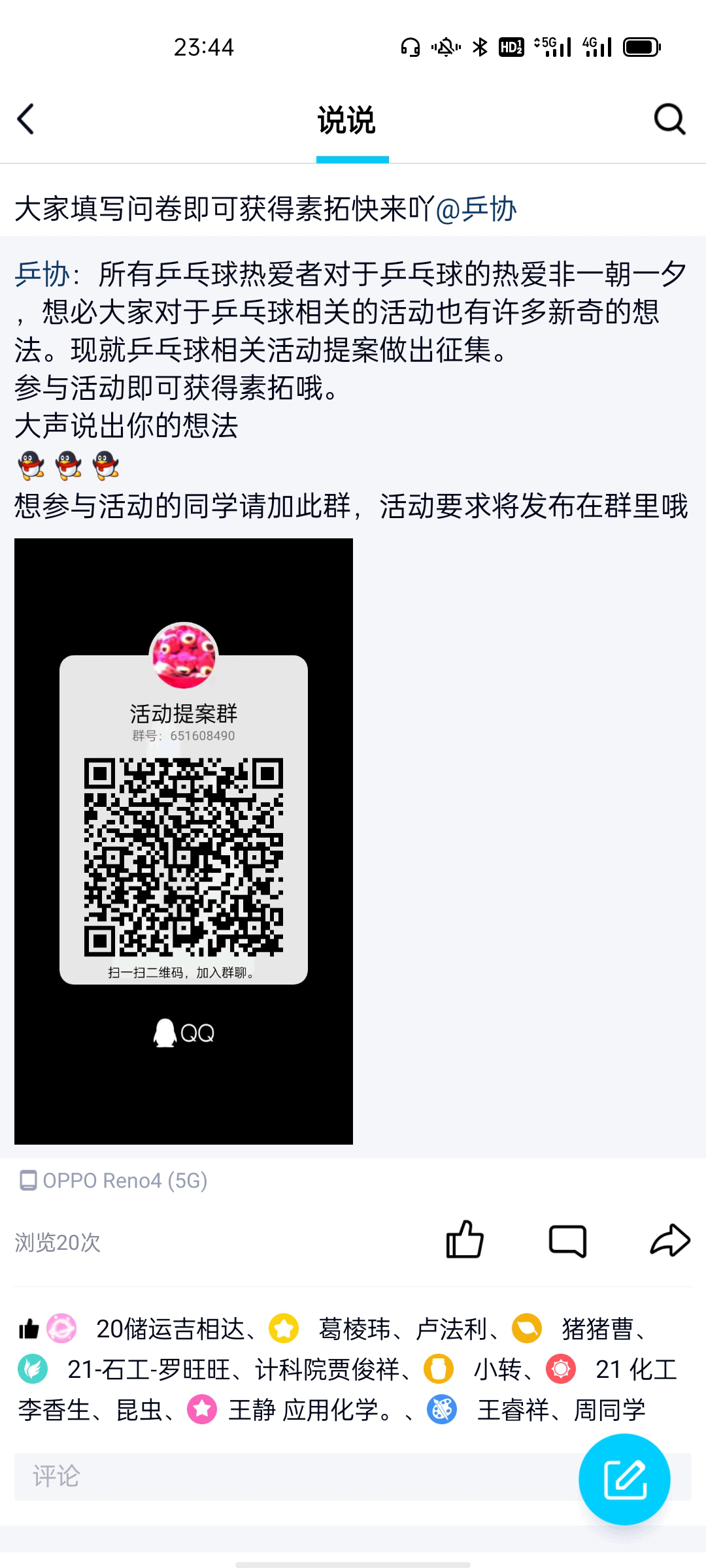 本次活動的具體形式為線上填寫問卷調查形式,主要收集同學們對于乒乓球相關的活動的想法,通過這樣的方式來拓展社團活動的形式和內容。同時,也可以增加同學們參加活動的積極性和對社團的歸屬感。除此之外,還通過多個社團合辦的形式,擴大活動的影響力和活動規模。在活動開始之前,乒乓球協會通過線上宣傳方式對活動進行了廣大的宣傳。活動開始后,參與活動的同學眾多,同學們也確實提出了許多可以有效執行的活動方案,比如:乒乓球男女混雙打,邀請專業認識對乒乓球活動做說明和講解等方法。