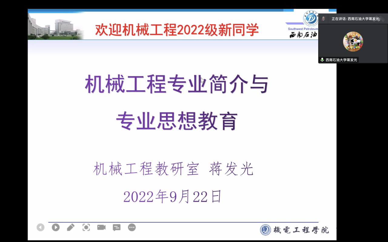 9月22日上午10點(diǎn),機(jī)電工程學(xué)院開展了機(jī)械工程專業(yè)思想教育,機(jī)械工程教研室主任蔣發(fā)光老師作為報(bào)告主講人,機(jī)械工程2022級(jí)新生參加此次講座。