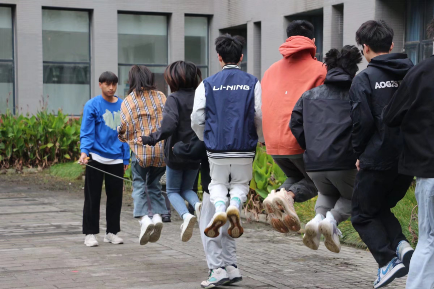 首先進行的是跳繩比賽,參加比賽的隊員積極熱身,觀看比賽的同學在體育部同學的指引下有序地站在兩旁為同學們加油打氣。此次跳繩比賽不僅能豐富同學們的校園生活,還能提高同學們的體育素養,體現出機電院學子們團結的精神。