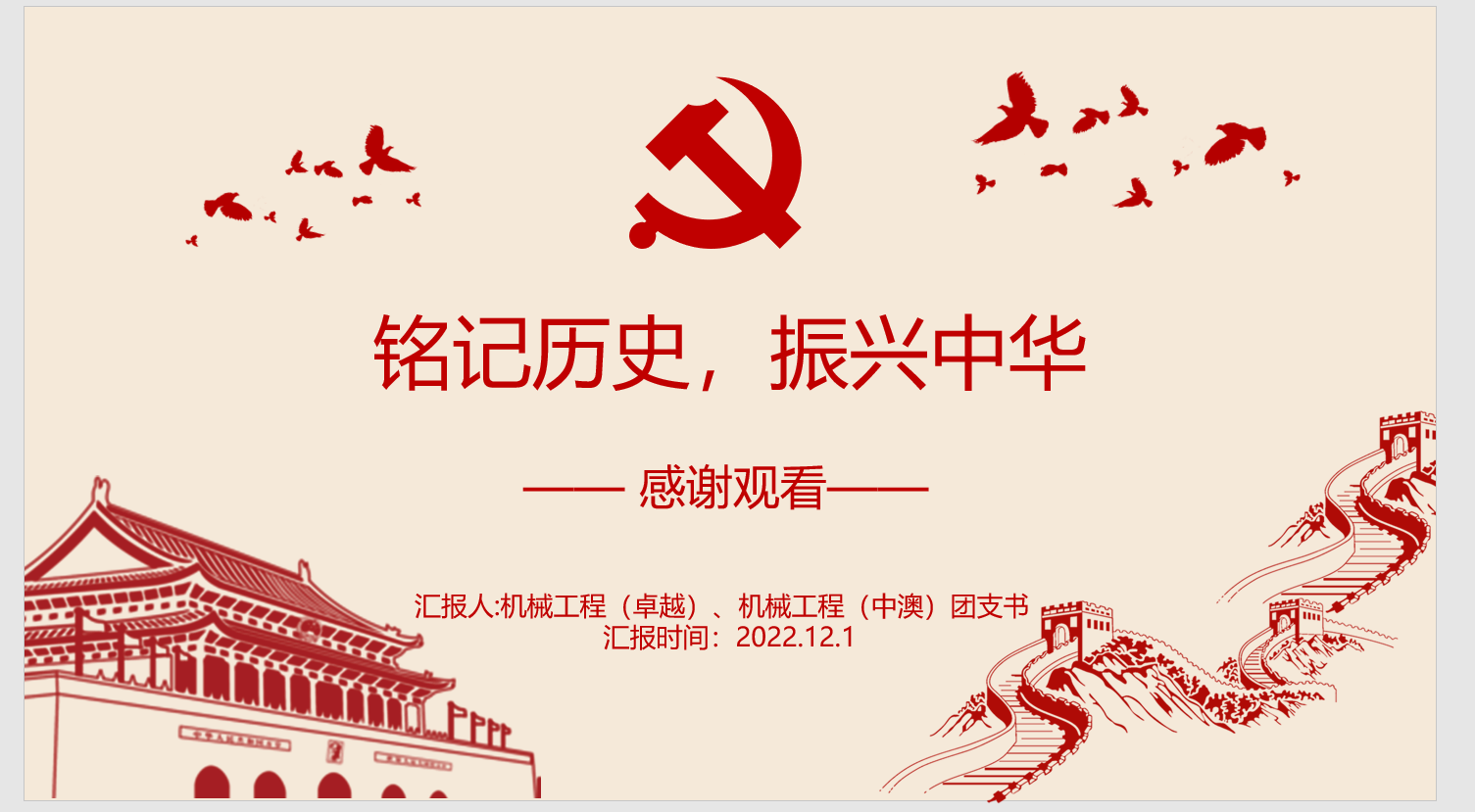 2022年12月1日下午,2021級機械工程(卓越)機械工程(中澳)團支部迎來了12月的聯合團組織生活,本次團組織生活出勤情況為滿勤,其主題為銘記歷史,振興中華。