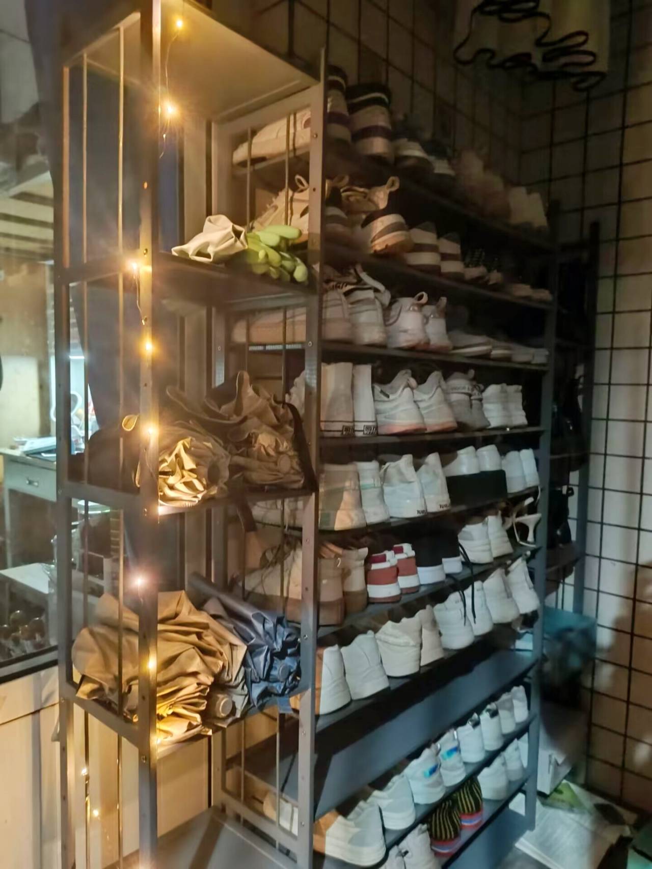 鞋子整齊擺放到陽臺(tái)的鞋架上