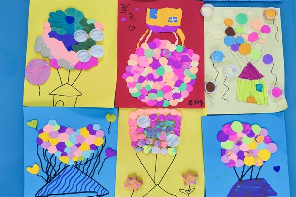 圖為小朋友利用瓶蓋制作的熱氣球屋