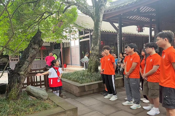 團隊跟隨講解員學習三蘇文化