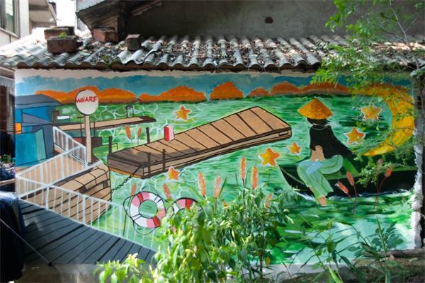 義旅陽光實踐隊隊員繪制完成碼頭主題墻繪