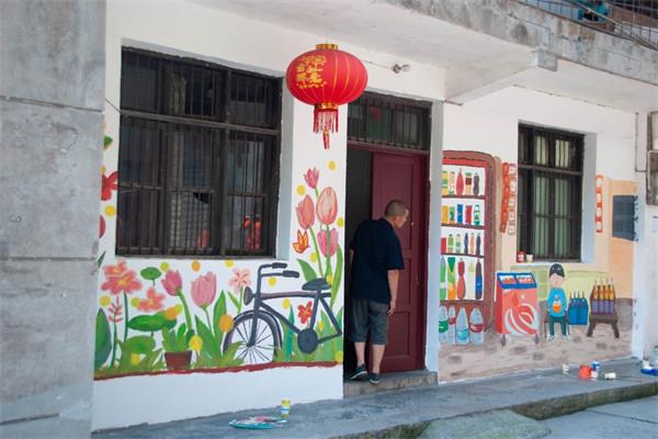 義旅陽光實踐隊隊員繪制完成小賣鋪墻繪