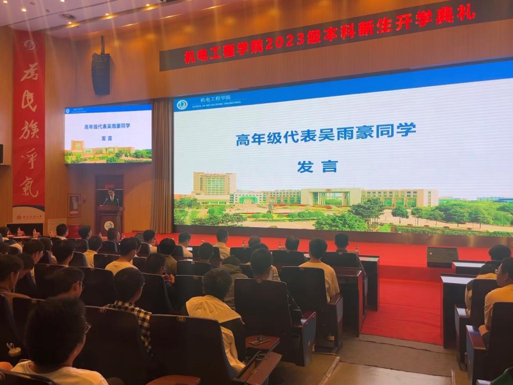 2023年9月27日上午九點,機電工程學院2023級本科生開學典禮在圖書館報告廳隆重舉行,來自全國各地的五百多名新生齊聚于此,共同開啟人生的新篇章。機電工程學院院長韓傳軍老師,學院黨委副書記、紀委書記姚偉寧老師,學院副院長王國榮老師,各學科教研室主任、教師代表、新生輔導員以及全體2023級本科生參加本次典禮,會議由新生輔導員袁玥主持。