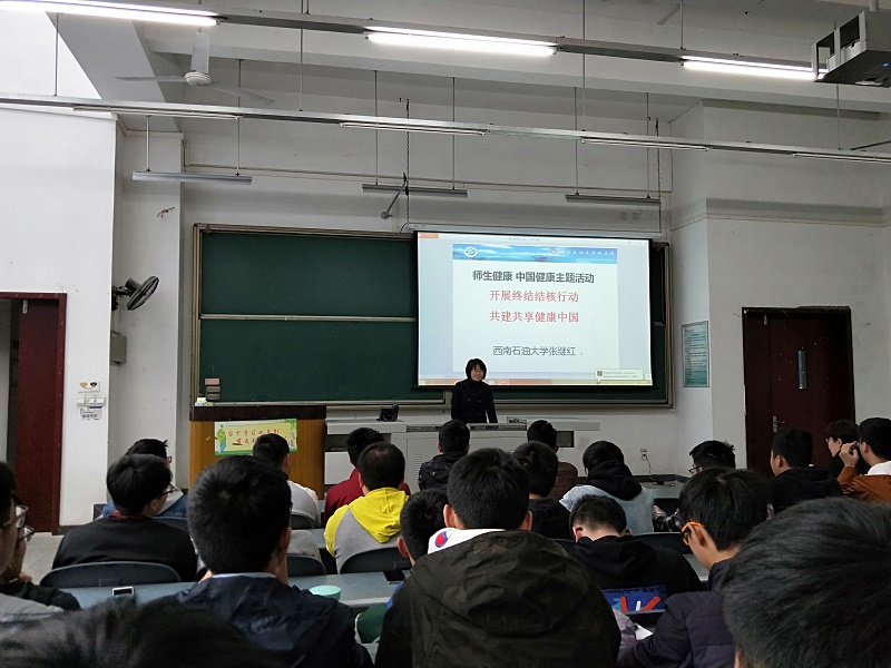3月21日下午4點(diǎn),宣講活動(dòng)于明德樓教室A213舉行,西南石油大學(xué)校醫(yī)院院長(zhǎng)張繼紅、新都區(qū)疾病預(yù)防控制中心李會(huì)相繼為同學(xué)們介紹了結(jié)核病的癥狀初期治療、基本防控等知識(shí)。讓同學(xué)們認(rèn)識(shí)到預(yù)防結(jié)核病的重要性以及結(jié)核病不是不可治愈的,國(guó)家也有相應(yīng)的醫(yī)療政策,做到國(guó)民上下一同抵御結(jié)核病。