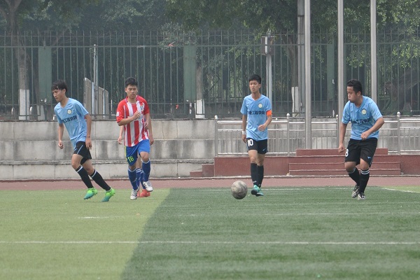 12時40分,比賽在裁判的一聲哨響中激烈得開始了。隨著裁判的一聲哨響,雙方運動員精力充沛,激情似火。雙方運動員們以最好的狀態(tài)投入比賽,他們默契的配合,巧妙的傳球,雙方的攻勢此起彼伏。剛開場不久,化工院就趁機電院立足未穩(wěn)先進一球。機電健兒隨后加強攻勢,憑借積極地拼搶,取得了一例寶貴的進球。上半場,雙方1:1戰(zhàn)平。休息過后,下半場比賽剛開始,機電院就發(fā)動猛烈攻勢,然而多次被化工院防守擋下,就這樣一攻一防,比賽在緊張的進行著。兩隊均有幾次精彩的射門,但都沒有能夠突破對方的防線破門得分。最終,兩隊以1:1結束了比賽。