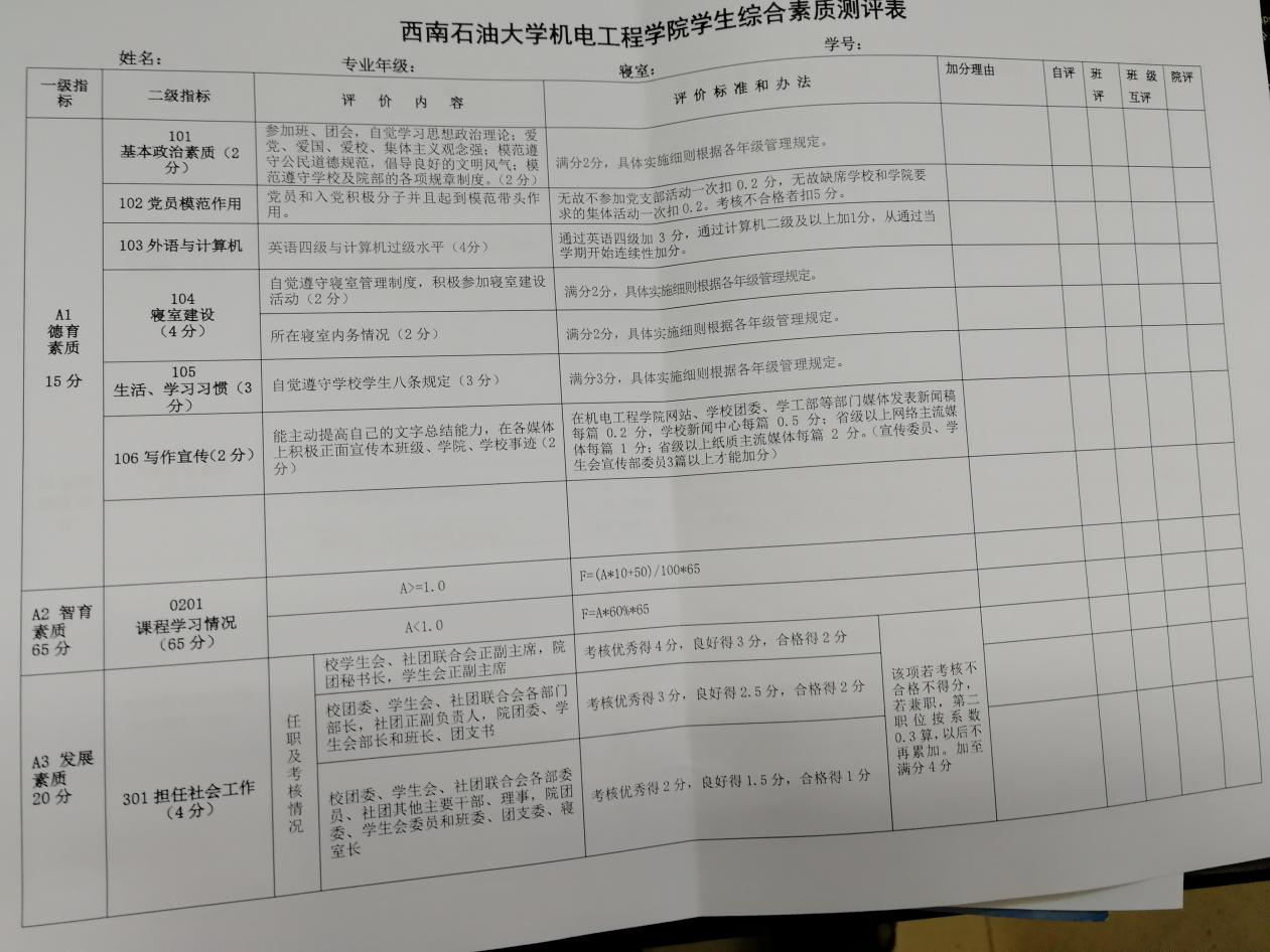 會議的最后一項,是班長研讀最新版的綜測表,并簽字確認。