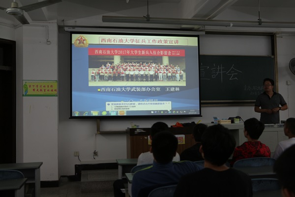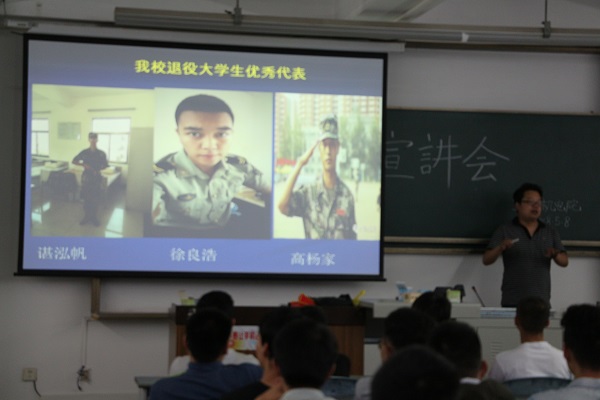 5月8日晚7:00,學校武裝部王老師在思學樓C406給機電院的同學們詳細講解應征入伍的優惠政策,并邀請了曾經應征入伍的在校大學生鄭伯軍學長,為我們講述他曾經的入伍經歷。