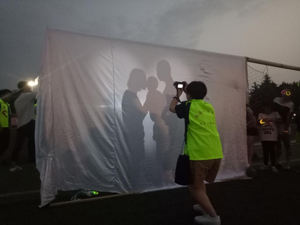 本次活動是公益性質(zhì),尤為值得一提的是,本活動不僅為情侶開放,而且為家人、朋友開放。為了使活動更加完善,青志協(xié)的成員們?yōu)榇俗隽顺浞值臏蕚洹H缭诨顒娱_始的前兩周便寫好了策劃,活動前一周青協(xié)成員便開始通過官Q、空間說說、擺攤發(fā)宣傳單等方式進行了廣泛宣傳,并迎得了大家的積極響應。活動正式開始的前半小時,準備已就緒。專業(yè)攝像機、現(xiàn)場打印照片、贈送的美麗鮮花,活動熱火朝天的進行著。就算夜里熱浪涌動,也毫不影響這美好的一切,白色幕布上投射出的各具特色的剪影,相機使幸福的瞬間定格為永恒,一切都井然有序地進行著。不知不覺,活動便接近了尾聲。最后在這塊幕布前,青志協(xié)也留下了永恒。