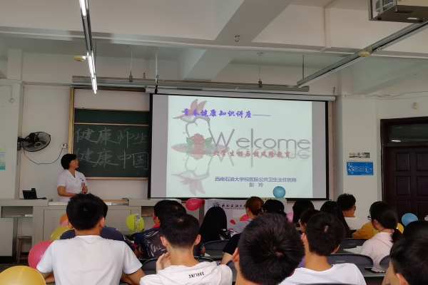 在第二環節,彭玲老師上臺為同學們進行大學生性與性風險教育。從什么是“性”,到男女生生理知識,再到性風險教育,彭老師用生動的語言和專業的知識為同學們全面地進行了相關教育,在輕松愉快的氛圍中給在場同學留下了深刻印象。