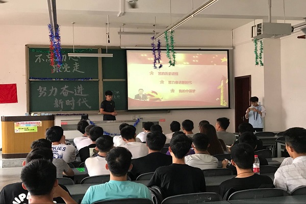 5月24日下午2點半,過控2017級一支部舉辦了以“不忘初心跟黨走,努力奮進新時代”為主題的團組織生活。團組織生活分為黨的歷史進程,努力奮進新時代,我的中國夢三個篇章,榜樣視頻展示,才藝表演和猜成語。此次團組織生活由過控一班文逸飛主持。