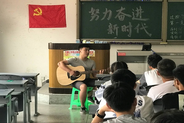 會議伊始,主持人文逸飛為我們講述了黨的歷史進場,努力奮進的新時代以及我的中國夢等主題,讓我們深刻感知作為青年學子要承擔使命,接力奮斗,要堅定理想信念,志存高遠,腳踏實地,勇做時代的弄潮兒,在實現中國夢的生動實踐中放飛青春夢想。隨后大家一同看了以榜樣為主題的兩個視頻,第一個視頻介紹的是不擺架子,多半事實的張家明,另一個則是千里援疆,不忘初心的黃群超,通過這兩個視頻,大家都深刻感受到榜樣是用行動為人民默默奉獻自己的一生。所以作為當代大學生的我們更應該努力學習,為實現偉大的中國夢而奮斗。接下來周雨同學為我們獻上吉他彈唱《Some Just Like This》,以及猜成語游戲結束本次團組織生活。