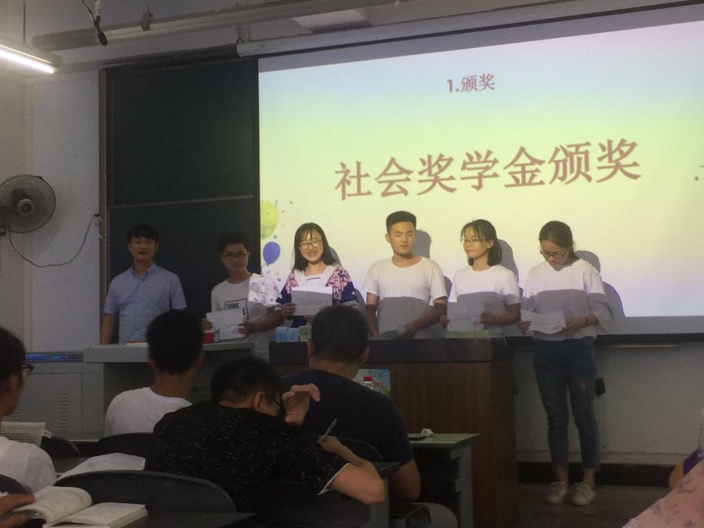 會議一開始,伍老師便為上一學年獲得獎學金的優秀學生們頒發了榮譽證書。在表揚這些獲獎同學的同時,也鼓勵其他同學們:拿獎學金其實沒那么難,只要你們平時更加努力一點。課內認真上課,鞏固基礎,積極備戰即將到來的期末考試,取得更好地學習成績。課外積極參加校院集體活動以及各類競賽,提升能力的同時提高綜測成績。這樣循序漸進,不斷地超越自我,其實每個人都有可能得獎學金的。接著,伍老師又一次提到了即將到來的四、六級考試。他希望報了名的同學可以認真對待考試,積極備考,拒絕“裸考”,盡量發揮出自己的最好水平,不留遺憾。