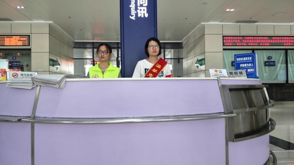 圖3志愿者在客運樞紐站前臺提供咨詢