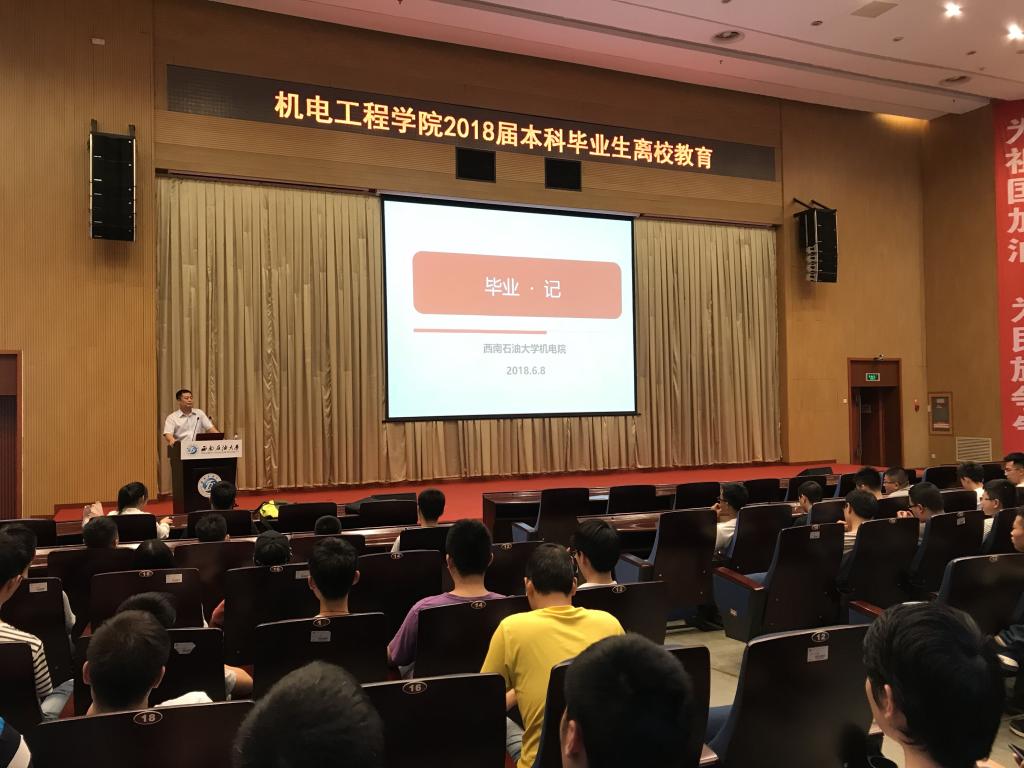 為確保我院2018屆畢業生安全、文明離校,6月8日下午4點20分,機電工程學院在圖書館報告廳組織召開了2018屆本科畢業生離校教育會議。學院黨委副書記姚偉寧出席會議并講話,各畢業班輔導員及全體大四學生參加會議。