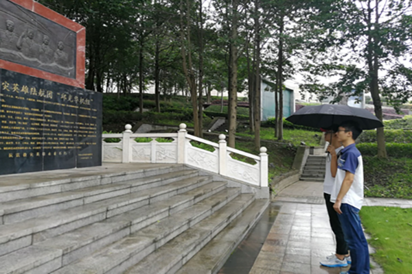 我們了解到隊里的幾位同學,他們表示已經不是第一次來這里了,每一次來看望英雄們,心中的民族使命感和自豪感愈發強烈,先烈們的事跡鼓舞著他們認真學習,,用知識使我們的民族越來越強大。踏著曲折的階梯,手摸斑駁的樹群,轉角的木質指路標似乎說著這里曾發生的讓中華民族都不能也不允許的歷史。