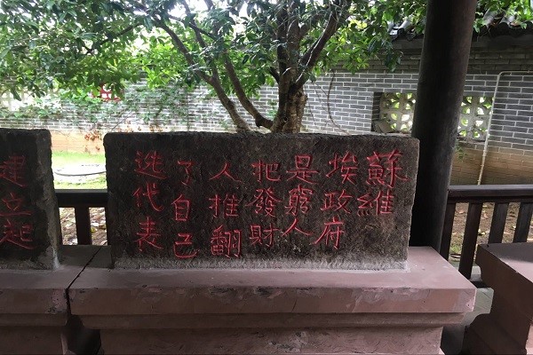 上午,我們前往木門遺址,參觀了曾經(jīng)木門會議舉行的地方,進入遺址地點后首先映入眼簾的是曾經(jīng)的勞動人民在石碑上的刻字,贊頌蘇維埃政府,力挺共產(chǎn)主義,讓我們看見了川陜?nèi)嗣竦拿褡屣L(fēng)貌。會議的場地簡陋隨意,但正好符合紅軍長征路上,以及共產(chǎn)黨的樸實,就是這個破爛的小屋成為川陜革命軍壯大的力量。