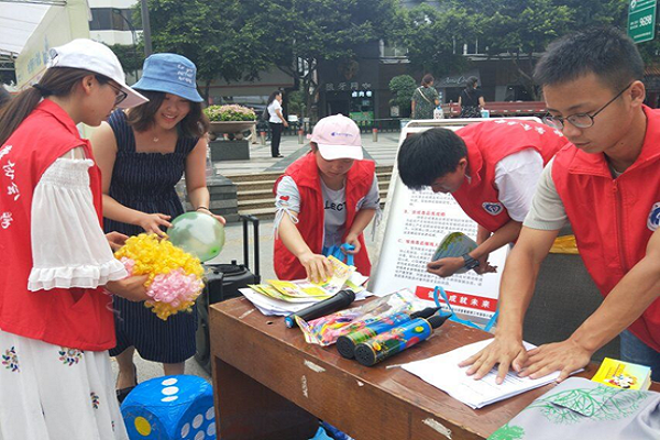 2018年7月7日上午,生命之花實踐隊在新都黃桷樹廣場進行了以禁毒防艾為主題的社會實踐活動。此次活動由隊長周丹帶領,全體隊員共同參與。據悉,本次活動形式多樣,主要由咨詢臺答疑、有獎競答、趣味游戲等組成。