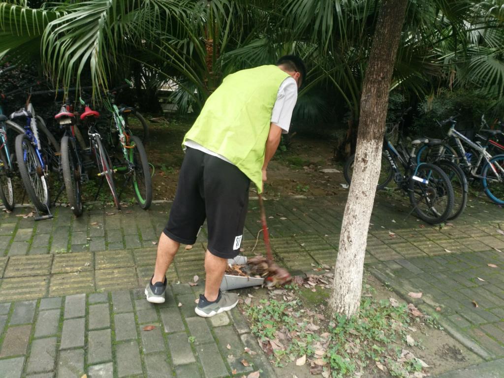 隊員們迫不及待從二期操場出發(fā),對草坪,籃球場等地方的衛(wèi)生死角進行垃圾清理。同時也對路邊亂停的自行車進行了耐心整理。烈日當(dāng)頭,隊員們早已汗流浹背,隊員們只能一邊清潔一邊聊天以緩解酷熱,小小的舉動為校園增添不少“美麗”。在清潔過程中,隊員們互幫互助,同時也深刻的體會到了校園衛(wèi)生的保潔的不易。