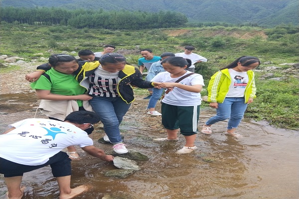 山路崎嶇,但人心團結。大家順著河流一路而上,不管是經過水洼之地還是泥濘之道,大家都齊心協力,互幫互助,共同砥礪前行。當路過比較湍急的河流的時候,實踐隊的幾個成員和幾個年紀稍大的兒童很有默契地站在水中手牽手幫助其他的孩子們跨過河流,即便打濕了雙腳,也毫不抱怨,同時還感受到了幫助別人的快樂。