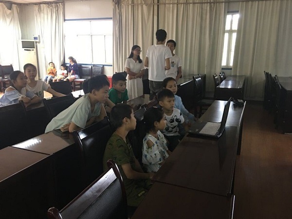 孩子們專心觀看西南石油大學(xué)宣傳片
