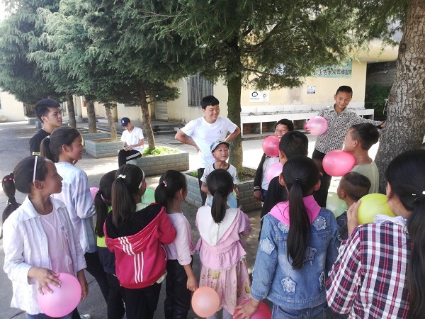 連續的陰雨天氣終究會結束,大家終于迎來陽光。實踐隊員帶著19名兒童,拿著小獎品和玩具來到了操場。昨日的歡樂將繼續延續,孩子們生活的色彩將會再添一筆。