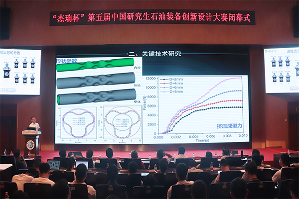 中國研究生石油裝備創新設計大賽旨在培養研究生的創新思維,增強廣大研究生的自主創新能力和綜合實踐能力,促進研究生培養質量的提高。在27日答辯后,評委組選出了12支代表隊參加特等獎的答辯,其中就有4支隊伍來自西南石油大學機電工程學院,這無疑是評委們對我院科研成果的肯定。最終我院學生2016級謝帥、謝經軒、楊欽、楊靜遠、肖瑤帶來的作品《丁胞式高效傳熱管關鍵技術研究與成型裝備研制》榮獲大賽特等獎。