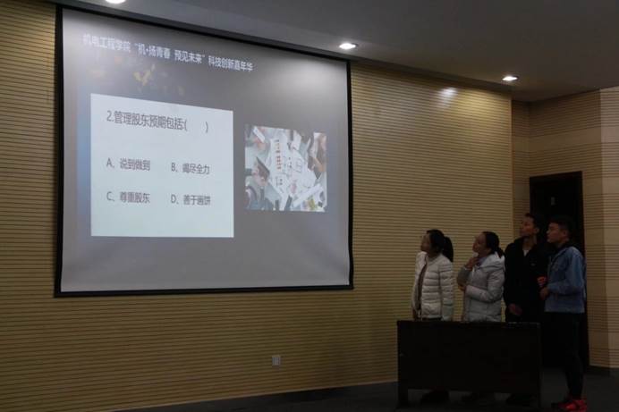 為豐富大學(xué)生的課余生活,提高大學(xué)生的科技文化知識(shí),發(fā)展同學(xué)們對(duì)科學(xué)知識(shí)的探索精神;同時(shí)為了活躍我院雙創(chuàng)文化氣氛,激發(fā)我院學(xué)生學(xué)習(xí)和了解創(chuàng)新創(chuàng)業(yè)相關(guān)知識(shí)的積極性,努力做好我院雙創(chuàng)的建設(shè),西南石油大學(xué)機(jī)電院學(xué)生會(huì)雙創(chuàng)部門2018年11月25日晚19:00,在明志樓b105教室舉行科技知識(shí)競(jìng)賽決賽。