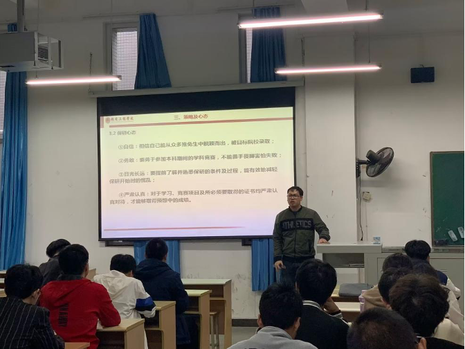 分享會上,機械專業研二學生歐進仕從規劃選擇、自身認知、學習備考、考研心態、未來的研究生生活等方面進行了詳細的分享。強調在考研之前要明確自己的目標,堅定決心,穩定心態。針對考研中常見的心理和情緒困擾,他以自身的實際經驗為大家提供了調適建議,鼓勵大家要保持積極向上的心態,學會減壓及自我調整。機械工程專業研二學生傅世奇從保研方面講述了自己的成功經驗,他分別以整體規劃、保研資格的獲得、學科教學專業保研為切入點,對保研中最常用到的專業知識進行了簡單闡述,著重強調科研經歷在其中的重要程度,鼓勵保研邊緣人積極調整心態,做好兩手準備。分享會后兩位研究生對現場同學們提出的疑問進行了解答和分享。