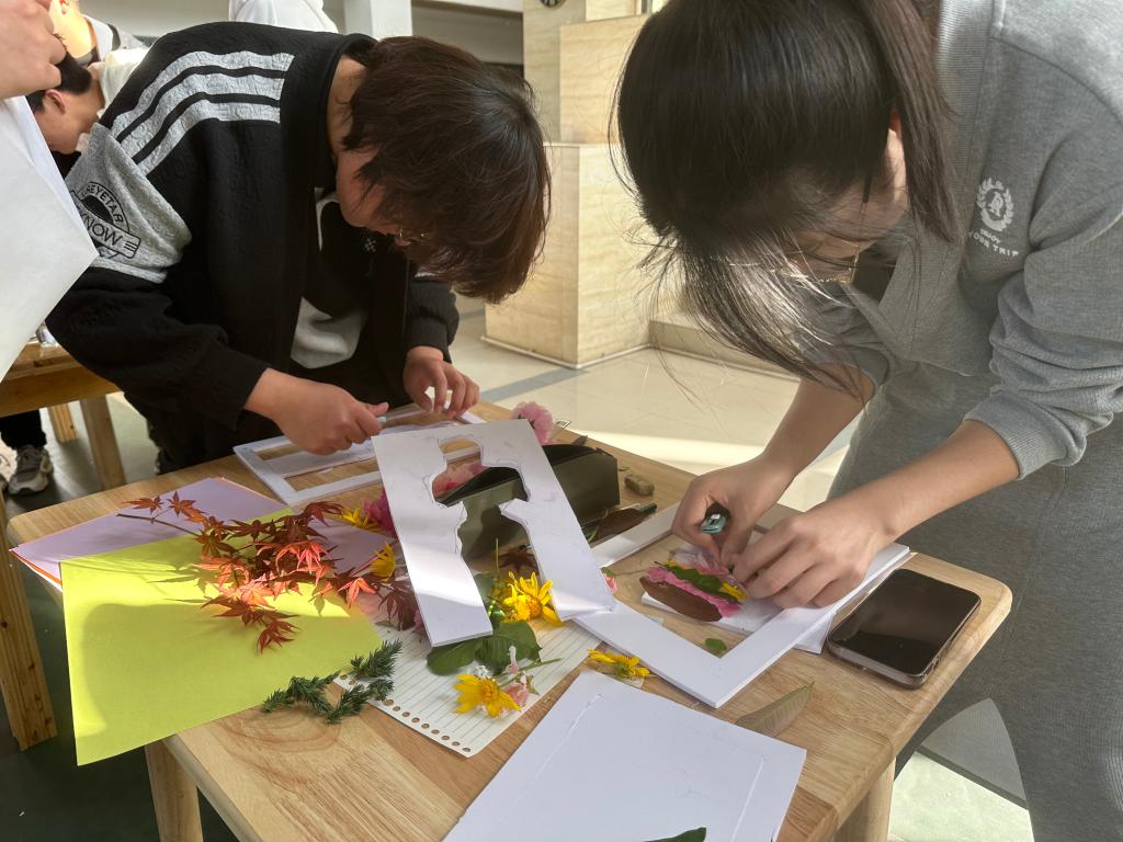 活動分為落葉、落花拾取和手工藝品制作兩部分。學生在明志樓集合領取勞動工具后,在校園進行落葉、落花拾取,收集值得珍藏的落葉、落花,并利用心理服務站提供的工具制造手工藝品,通過為飄零的落葉、落花賦予新生,幫助學生感受春日的美好和生活的溫度。