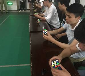 本次比賽共有14組參賽隊(duì)伍,在活動(dòng)之初,李云峰老師為本次活動(dòng)致辭,充分調(diào)動(dòng)起了各隊(duì)的積極性。在第一個(gè)比賽項(xiàng)目頭腦風(fēng)暴中,各隊(duì)積極搶答,高潮不斷。值得一提的是在第二個(gè)比賽項(xiàng)目魔方還原中,來自第3組的陸柯江同學(xué)以14秒還原成功的成績(jī)傲視群雄,勇奪魔方比賽第一名。同時(shí)在第三個(gè)比賽項(xiàng)目你畫我猜中涌現(xiàn)了許多的"靈魂畫手",他們以不同尋常的特殊繪畫技巧,為比賽畫上了濃重的一筆。緊隨其后的記憶比拼也讓我們發(fā)掘了不少的"記憶大師"。最后,伴隨著壓軸比賽九死一生的結(jié)束,工作人員迅速開始統(tǒng)計(jì)分?jǐn)?shù)。
